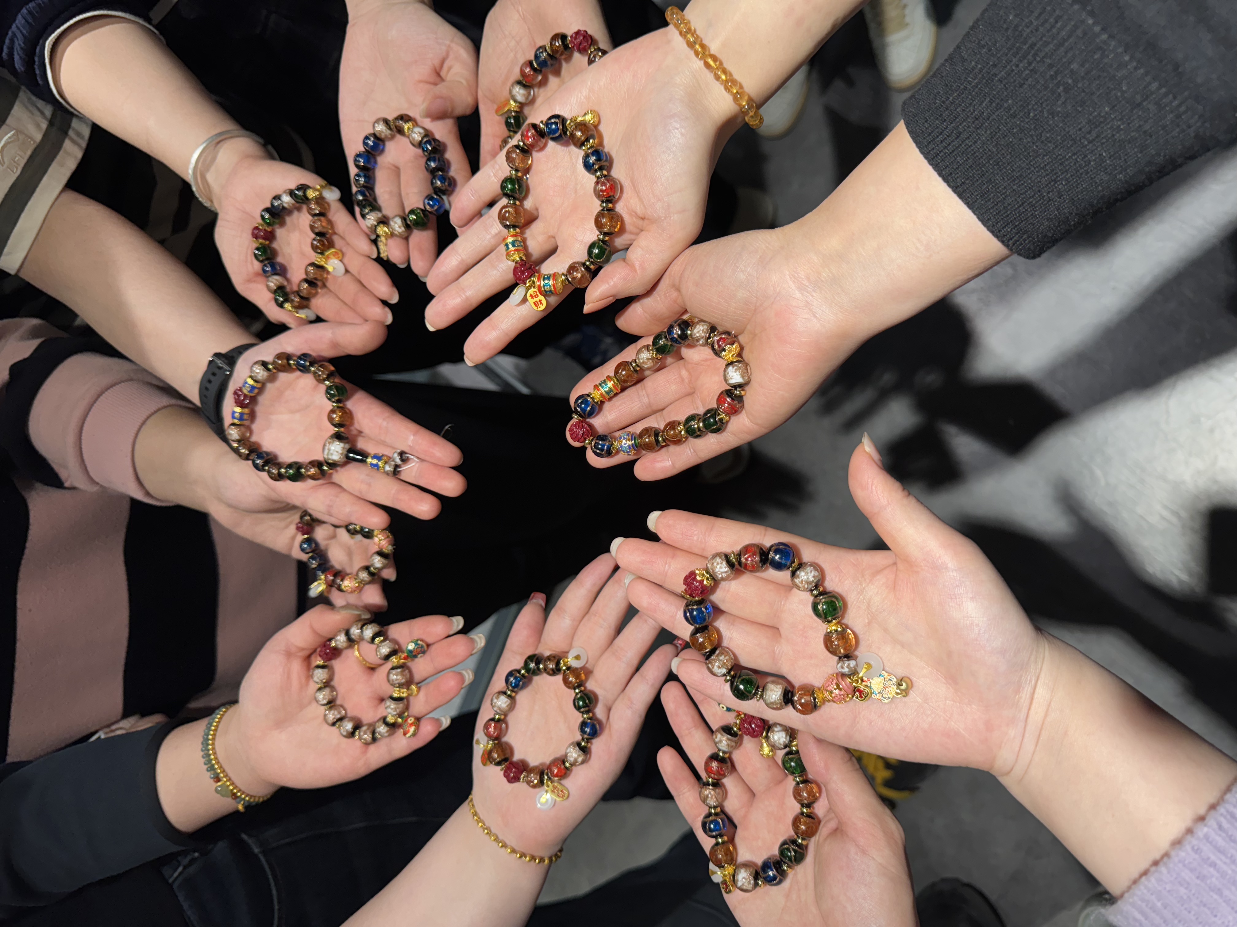 大家坐在一起認(rèn)真挑選自己喜歡的珠子,專業(yè)導(dǎo)師全程指導(dǎo)串珠技藝,從基礎(chǔ)穿引到進(jìn)階編織,融合傳統(tǒng)工藝與現(xiàn)代美學(xué),打造獨(dú)一無(wú)二的“春日信物”