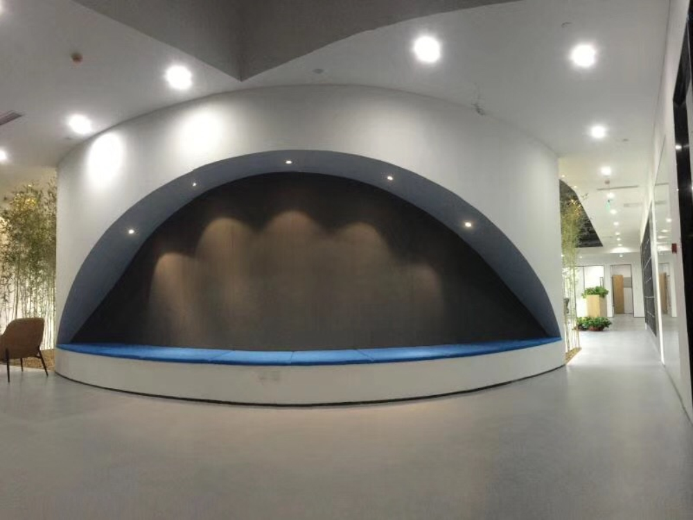 造型上打破常規(guī),弧形背景墻給人眼前一亮隔的感覺,色彩設計上比較簡潔,巧妙地融入了自然竹子造景,使用竹子和其他材質相呼應,室內色彩純凈,氛圍悠閑,創(chuàng)造一個安靜的公共空間,提供更好的工作環(huán)境。
